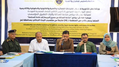 شبام برس/خاص: عُقدت في محافظة تعز ورشة عمل تشاورية موسّعة جمعت قيادات قضائية وأمنية وقانونية وحقوقية وأكاديمية، لمناقشة صياغة…