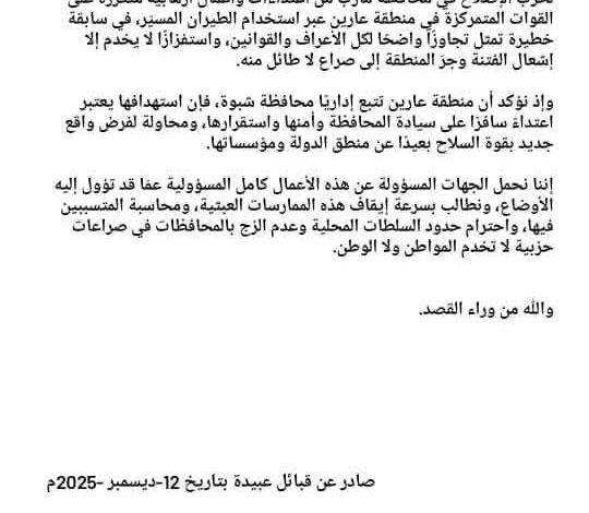 *صادر عن قبائل عبيدة بتاريخ 12 ديسمبر 2025 م