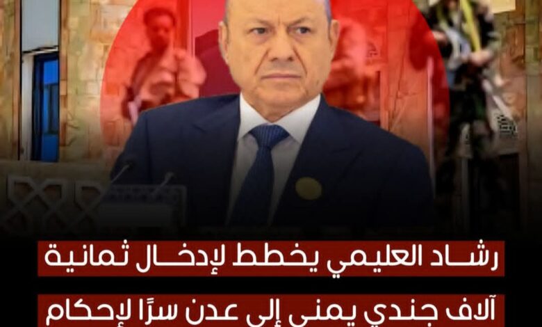 رشاد العليمي يخطط لإدخال ثمانية آلاف جندي يمني إلى عدن سرًا لإحكام السيطرة على العاصمة