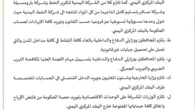 شبام برس/خاص: تكشف وثيقة صادرة عن مجلس القيادة الرئاسي الجهات المتخلفة عن التوريد الى البنك المركزي : شركة النفط…