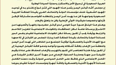 مجلس اتحاد قبائل اليمن يثمن الخطوة الوطنية المسؤولة لقبائل حضرموت والمهرة ويجدد دعمه للشرعية والتحالف